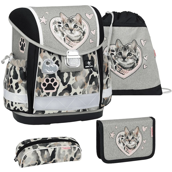Belmil Schulranzen Classy Schulranzen Set 4-teilig mit Brustgurt Wild Cat