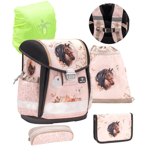 Belmil Schulranzen Classy Schulranzen Set 5-teilig mit Brustgurt Horse Chestnut