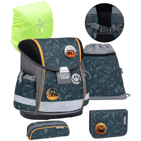CLASSY mit Patches Schulranzen Set beinhaltet:- 1 Ergonomischer Schulranzen – 1 Federmäppchen (leer)- 1 Schlampermäppchen – 1 Turnbeutel – 3 austauschbare Patches (3 StĂĽck)- 1 Stundenplan- 1 SchlĂĽsselbund – Regenschutz Funktionsweise: • Geeignet fĂĽr die Grundschule fĂĽr 6-9-Jährige• MaĂźe: 36 x 32 x 19 cm • Volumen: 19 L • Gewicht: 930-990 g • Material: Polyester• Ausstattung: ergonomisches RĂĽckendesign, verstellbarer und leicht abnehmbarer Brustgurt und verstellbare Schultergurte, geeignet fĂĽr A4-Format• Verschlussart: einfach zu bedienende reflektierende Metallschnalle • Inneneinteilung, groĂźer Stauraum, Seitentaschen mit Kordelzug (fĂĽr Regenschirm oder Trinkflasche bis 0,7 L), separates Fach fĂĽr Federmappe, Stundenplanhalter auf dem Deckel• Packungsinhalt: 1 Schulranzen; 1 Federmäppchen (leer); 1 Federtasche; 1 Turnbeutel; 3 StĂĽck Patches, 1 Stundenplan, 1 SchlĂĽsselanhänger Ergonomie: • Angenehmer Tragekomfort durch geringes Gewicht• Ergonomische Form und atmungsaktive RĂĽckenpolsterung fĂĽr zusätzlichen Komfort • Gut gepolsterte Schultergurte, die an zwei Punkten verstellbar sind: oben und unten fĂĽr perfekten Sitz • FĂĽr eine optimale Gewichtsverteilung ist die Tasche mit einem verstellbaren und abnehmbaren Brustgurt ausgestattet • Zertifiziert und empfohlen von der AGR (Aktion Gesunder RĂĽcken), der Deutschen Gesellschaft Forum Gesunder RĂĽcken – Besser leben und dem Bundesverband Deutscher RĂĽckenschulenLanglebigkeit:• Allseitige Verstärkungen und ein starkes Hartplastik-Unterteil erhöhen die Stabilität und Haltbarkeit • Das Bodenteil hat noch weitere Funktionen: Es sorgt dafĂĽr, dass die Tasche in der gleichen Position bleibt und verhindert, dass sie verschmutzt wirdDesign:• „Classy mit Patches” kommt mit einem Set von 3 austauschbaren Patches, die auf der Vordertasche, dem Deckel und dem Federmäppchen kleben• Lebendige und farbenfrohe Drucke• Entworfen und hergestellt in EuropaSicherheit:• Sorgfältig platzierte reflektierende Elemente an allen Seiten, Fronttasche, an den Schultergurten und eine reflektierende SchnalleGarantie:• 2 Jahre Garantie – Made in Europe • Familienbetrieb in 3. Generation seit 1965″- 1 Ergonomischer Schulranzen – 1 Federmäppchen (leer)- 1 Schlampermäppchen – 1 Turnbeutel – 3 austauschbare Patches (3 StĂĽck)- 1 Stundenplan- 1 SchlĂĽsselbund Funktionsweise: • Geeignet fĂĽr die Grundschule fĂĽr 6-9-Jährige• MaĂźe: 36 x 32 x 19 cm • Volumen: 19 L • Gewicht: 930-990 g • Material: Polyester• Ausstattung: ergonomisches RĂĽckendesign, verstellbarer und leicht abnehmbarer Brustgurt und verstellbare Schultergurte, geeignet fĂĽr A4-Format• Verschlussart: einfach zu bedienende reflektierende Metallschnalle • Inneneinteilung, groĂźer Stauraum, Seitentaschen mit Kordelzug (fĂĽr Regenschirm oder Trinkflasche bis 0,7 L), separates Fach fĂĽr Federmappe, Stundenplanhalter auf dem Deckel• Packungsinhalt: 1 Schulranzen; 1 Federmäppchen (leer); 1 Federtasche; 1 Turnbeutel; 3 StĂĽck Patches, 1 Stundenplan, 1 SchlĂĽsselanhänger Ergonomie: • Angenehmer Tragekomfort durch geringes Gewicht• Ergonomische Form und atmungsaktive RĂĽckenpolsterung fĂĽr zusätzlichen Komfort • Gut gepolsterte Schultergurte, die an zwei Punkten verstellbar sind: oben und unten fĂĽr perfekten Sitz • FĂĽr eine optimale Gewichtsverteilung ist die Tasche mit einem verstellbaren und abnehmbaren Brustgurt ausgestattet • Zertifiziert und empfohlen von der AGR (Aktion Gesunder RĂĽcken), der Deutschen Gesellschaft Forum Gesunder RĂĽcken – Besser leben und dem Bundesverband Deutscher RĂĽckenschulenLanglebigkeit:• Allseitige Verstärkungen und ein starkes Hartplastik-Unterteil erhöhen die Stabilität und Haltbarkeit • Das Bodenteil hat noch weitere Funktionen: Es sorgt dafĂĽr, dass die Tasche in der gleichen Position bleibt und verhindert, dass sie verschmutzt wirdDesign:• „Classy mit Patches” kommt mit einem Set von 3 austauschbaren Patches, die auf der Vordertasche, dem Deckel und dem Federmäppchen kleben• Lebendige und farbenfrohe Drucke• Entworfen und hergestellt in EuropaSicherheit:• Sorgfältig platzierte reflektierende Elemente an allen Seiten, Fronttasche, an den Schultergurten und eine reflektierende SchnalleGarantie:• 2 Jahre Garantie – Made in Europe • Familienbetrieb in 3. Generation seit 1965