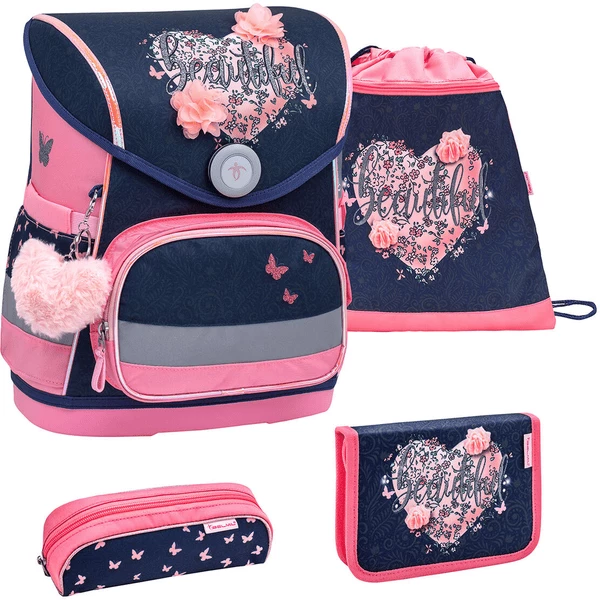 Belmil Schulranzen Compact Schulranzen Set 4-teilig mit Brustgurt Beautiful Flowers