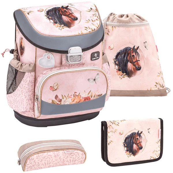 Belmil Schulranzen Mini Fit Schulranzen Set 4-teilig mit Brustgurt Horse Chestnut
