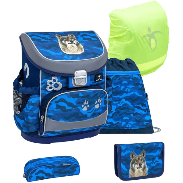 Belmil Schulranzen Mini Fit Schulranzen Set 5-teilig mit Brustgurt Alpha Wolf