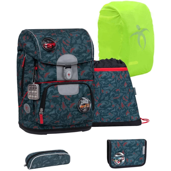 MOTION SET (405-74/S)Motion Schulranzen-Set enthält:- 1 Ergonomischer Schulranzen aus recyceltem Material- 1 Federmäppchen (leer)- 1 Schlampermäppchen – 1 Turnbeutel – 3 austauschbare Patches (3 Stück)- 1 Stundenplan- 1 Schlüsselbund • Regenschutz Funktionsweise: • Geeignet für die Grundschule für 6-9-Jährige• Maße: 35 x 27 x 20 cm • Volumen: 19 L • Gewicht: 1060-1120 g • Außenmaterial: recyceltes Material• Ausstattung: Ergonomisches Rückendesign, verstellbarer und leicht abnehmbarer Brustgurt und gepolsterter Hüftgurt, verstellbare Schultergurte, geeignet für A4-Format• Verschlussart: Einfach zu bedienende und reflektierende magnetische “”PUSH””-Schließe • Großer Stauraum mit Kordelzug zur Fixierung des Inhalts, Vordertasche mit Thermofutter für Brotdose, Seitentaschen mit Reißverschluss (für Regenschirm oder Trinkflasche bis • Packungsinhalt: 1 Schulranzen; 1 Federmäppchen (leer); 1 Schlampermäppchen; 1 Turnbeutel; 3 Patches, 1 Stundenplan, 1 Schlüsselanhänger Ergonomie: • Ergonomische Form und atmungsaktive Rückenpolsterung für zusätzlichen Komfort • Gut gepolsterte Schultergurte, die an zwei Punkten verstellbar sind: oben und unten für perfekten Sitz • Für eine optimale Gewichtsverteilung ist die Tasche mit einem verstellbaren und abnehmbaren Brustgurt und einem gepolsterten Hüftgurt ausgestattet • Langlebigkeit:• Verstärkungen an allen Seiten und ein starkes Hartplastik-Bodenteil erhöhen die Stabilität und Haltbarkeit • Das Bodenteil hat noch weitere Funktionen: Es sorgt dafür, dass die Tasche in der gleichen Position bleibt und verhindert, dass sie schmutzig wirdDesign: • „Motion“ wird mit einem Set von 3 austauschbaren Klettverschlüssen geliefert, die an der Vordertasche, dem Deckel und dem Mäppchen befestigt werden können• Einzigartige und bunte Motive• Außenmaterial aus recyceltem Material• Entworfen und hergestellt in EuropaSicherheit:• Sorgfältig platzierte reflektierende Elemente auf allen Seiten, auf der Magnetschnalle, auf dem Deckel und der Vordertasche, auch auf den Schultergurten und dem HüftgurtGarantie:• 2 Jahre Garantie – Made in Europe • Familienbetrieb in 3. Generation seit 1965