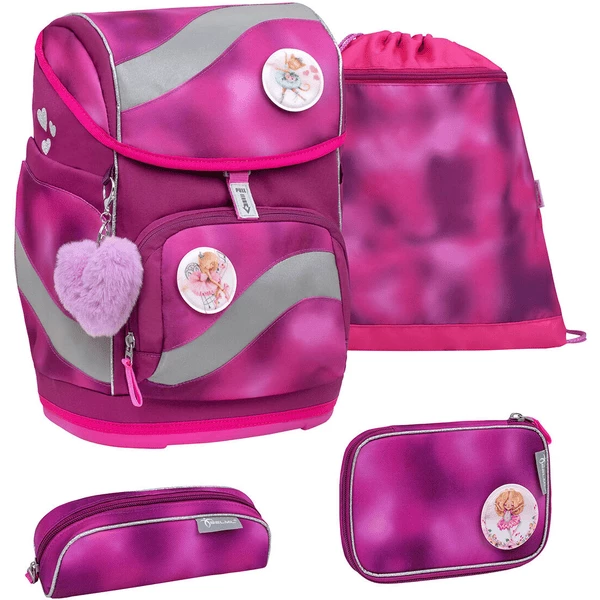 Belmil Schulranzen Smarty Schulranzen Set 5-teilig mit Brustgurt, Hüftgurt Shiny Pink