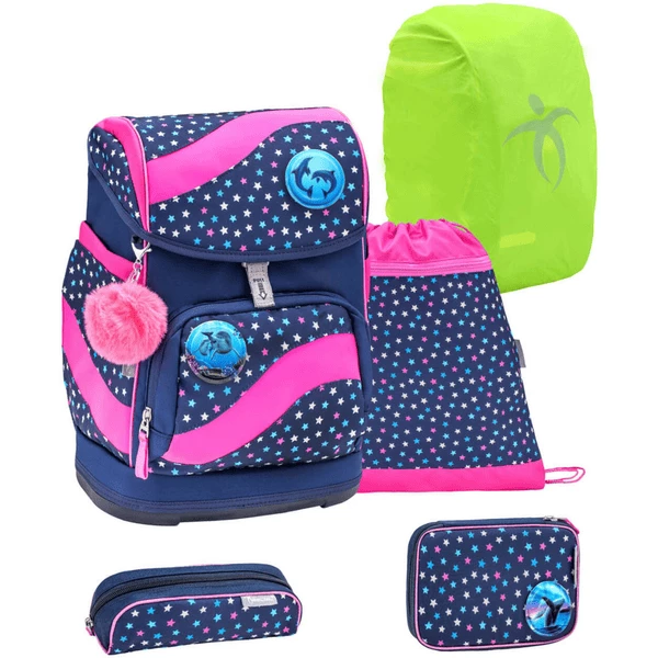 Belmil Schulranzen Smarty Schulranzen Set 6-teilig mit Brustgurt, Hüftgurt Stars